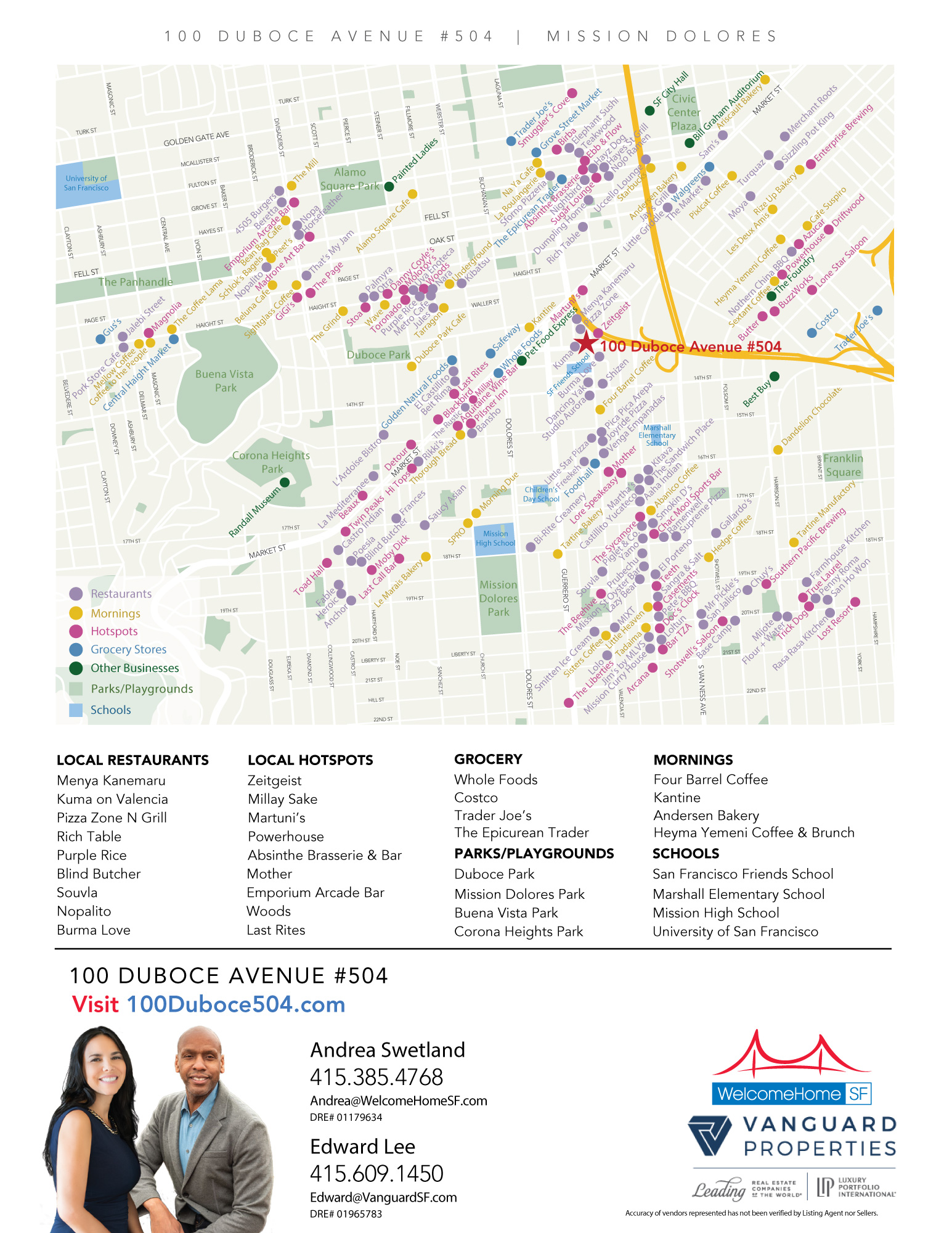 Located at the corner of Duboce Avenue and Valencia Street, this residence places you in the heart of one of the city’s most vibrant corridors, surrounded by celebrated restaurants, neighborhood cafés, and boutique shopping. With easy freeway access, nearby tech shuttle stops, and abundant public transportation, convenience and lifestyle come together seamlessly.