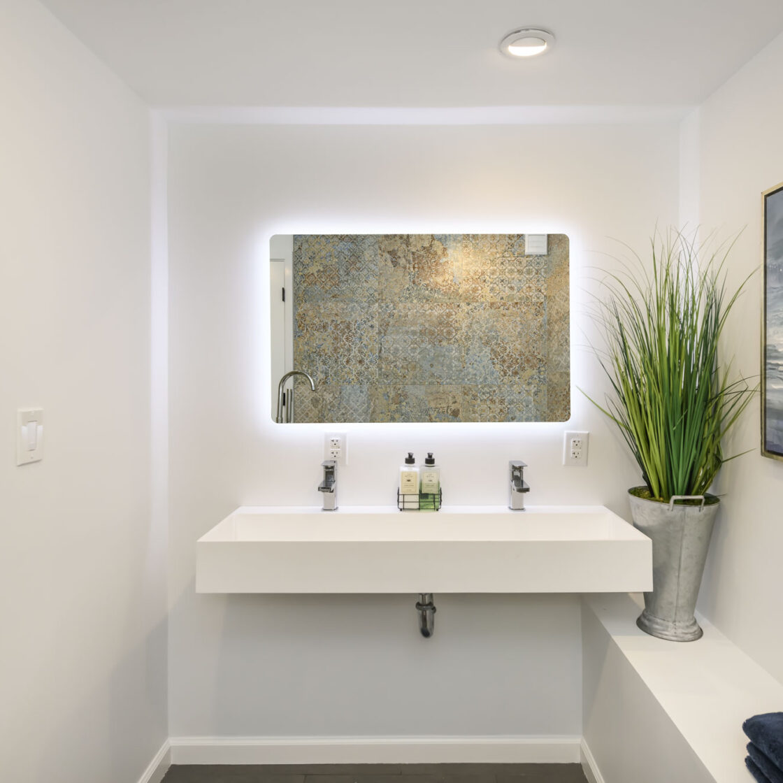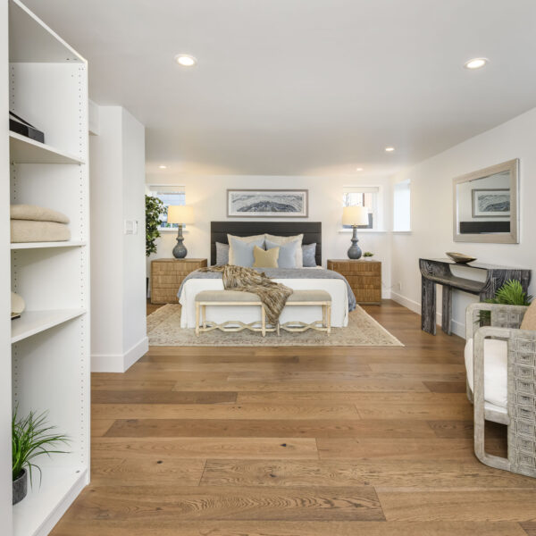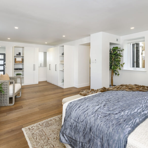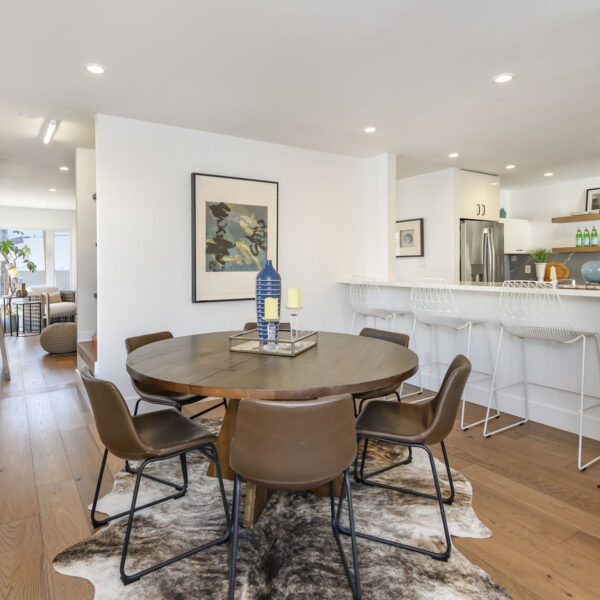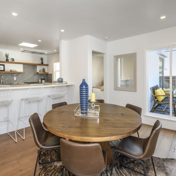 Originally remodeled and configured as a four-bedroom home, the upper level was thoughtfully reimagined by the current owners. By opening part of the wall of one of the bedrooms and adding a bar-height counter with seating, they transformed the space into a generous dining or family room that flows seamlessly into the kitchen. Large sliding doors open to an Ipe-finished patio, creating an effortless indoor–outdoor connection ideal for everyday living and weekend gatherings.